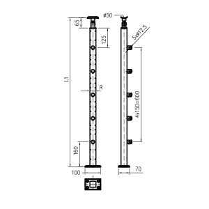 D= ø 50.8, R= kw. 38x1.2, A=5, L1=950