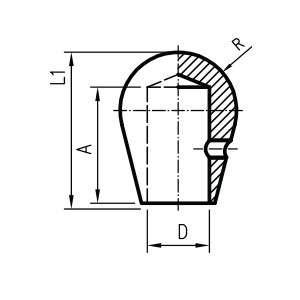 D= ø 12.5, R= ø27, A=32, L1=43