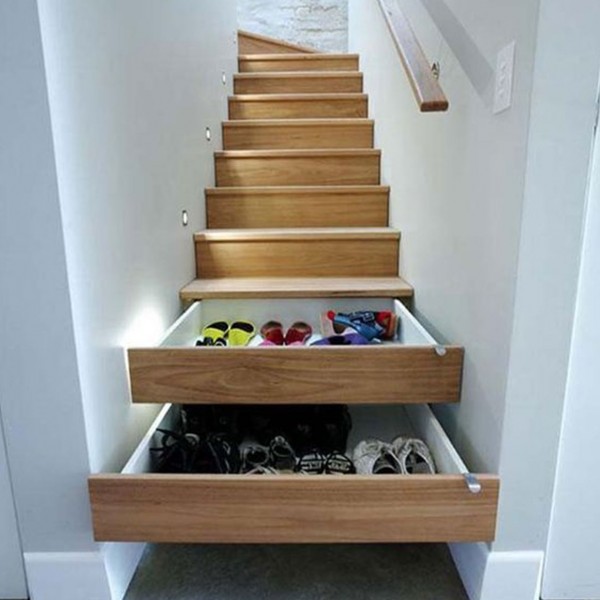 Schody wszystkim dobrze znane są jako most łączący dwa piętra. Jednak ze świata pomysłów pojawiły się inspiracje dzięki którym ludzie wykorzystują nudne stopnie do przechowywania swoich skarbów. Gdy jedni ozdabiają bok schodów książkami. Inni postanowili wysuwać stopnie, zamieniając je w rzędy szuflad, lub całkowicie tranformować je w piętrową bibliotekę